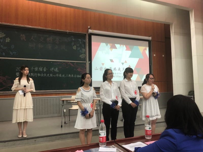2018年本科生宿舍评优工作从五月初启动至五月底正式落下帷幕。经过本科生申请、学院推荐、学校材料复核、实地走访、现场评审展示等环节,金沙官网本科16级528宿舍入围了最终的现场评审展示环节。在现场展示中,528宿舍从学习、工作、社会活动各方面进行了阐述,得到了现场同学热烈的掌声与评委老师的肯定,最终获得了校级“优秀宿舍”的荣誉。同时金沙官网14级203毕业生宿舍也凭借着优秀的大学学业成绩、丰富的工作经历、扎实的科研成果获得了校级“优秀毕业生宿舍”的称号。