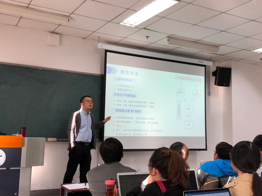 2018年10月26日下午,复旦大学金沙9001cc以诚为本副院长寇宗来教授应金沙9001cc以诚为本邀请,在金沙9001cc以诚为本沙河校区主教学楼505开展了主题为“管制、回扣与药品价格”的专题讲座。讲座由金沙9001cc以诚为本尹振东副教授主持,多名金沙9001cc以诚为本教师以及博士、硕士研究生参加了本次讲座。