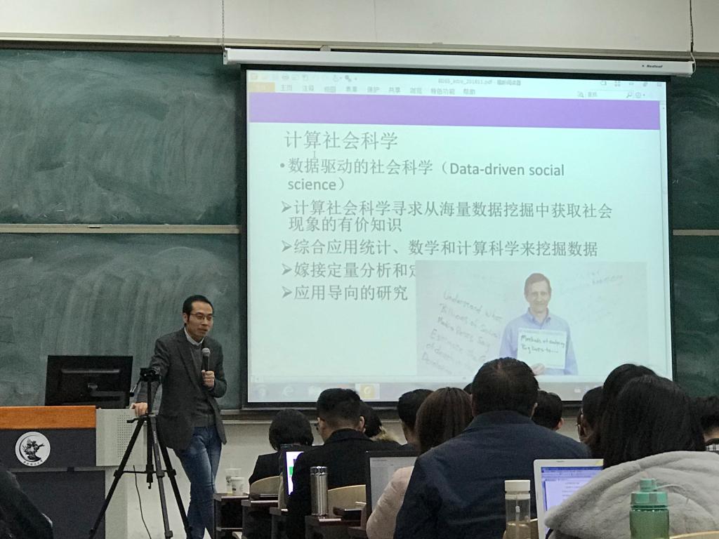 2018年11月9号下午6:30,金沙9001cc以诚为本计算社会科学系列课程正式开始。课程第一讲由清华大学社会科学学院政治学系副教授孟天广老师于主教213主讲。此次课程主题为社科研究中的大数据方法,期间孟天广教授从大数据+社会科学、计算社会科学方法论、研究方法、研究议题以及大数据方法的支持和批评等五个板块出发,为我们系统介绍了当前计算社会科学的发展趋势和前沿研究。