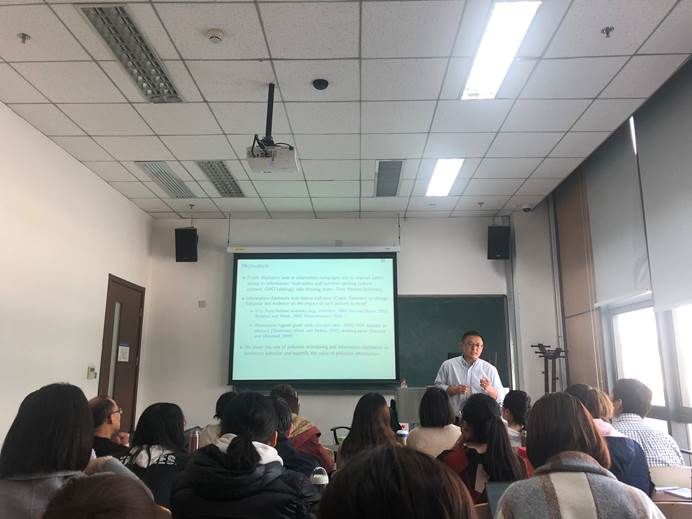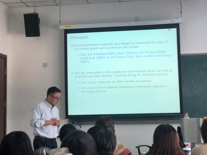 2019年3月8日下午,康奈尔大学讲席教授李善军老师应金沙9001cc以诚为本邀请,在沙河校区学院主教402教室开展了主题为“TheValue of Pollution Information: Evidence from China’s Air Quality Disclosure”的讲座。会议由金沙9001cc以诚为本院长助理黄乃静老师主持,校内多位老师以及40余名博士生和硕士生参加。