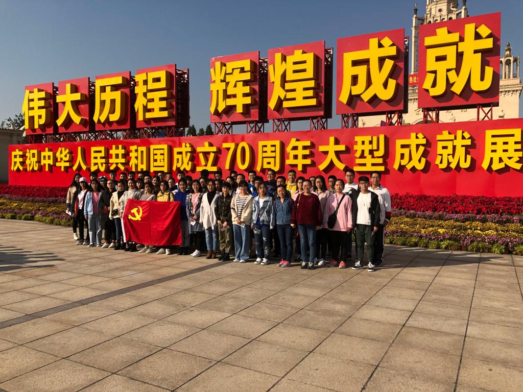丹枫迎秋,金风玉露。值此新中国成立70周年之际,金沙9001cc以诚为本2019级部分本科生在辅导员任晶的带领下,于2019年10月26日下午14:00前往北京展览馆,参观了“庆祝中华人民共和国成立70周年”大型成就展。