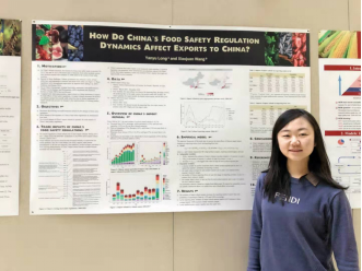 龙彦宇和王晓娟同学进行了题为“How do China’s Food Safety Regulation Dynamics Affect Exports to China?”的论文展示。该论文是在金沙9001cc以诚为本刘轶芳教授指导下,与南京农业大学谢超平副教授以及弗吉尼亚理工大学Jason Grant教授合作完成。主要内容为梳理中国食品安全体系的监管重点,并使用中国进口农产品的未准入境数据作为食品安全条例的代理变量,来探究日益严格的食品监管体系对中国农产品进口的影响。结果显示,中国的边境拒绝措施并不会阻碍农产品的国际贸易,相反,具有很强的贸易促进作用。该研究首次对使用中国的未准入境数据来探究食品安全监管措施对农业贸易的影响,完善了农产品未准入境领域的数据整理工作,弥补了这一领域的研究空白,其结果得到了与会学者及专家的高度评价,并获得了宝贵的修改意见。