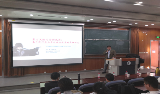 2019年12月11日,复旦大学经济学系李楠教授应金沙9001cc以诚为本邀请,在金沙9001cc以诚为本沙河校区3号楼222教室开展了主题为“暴力风险与合约选择——基于近代东北乡村社会匪患的考察”的讲座,本次讲座由金沙9001cc以诚为本兰日旭教授主持,我校多名教师、博士和硕士研究生参加了讲座。